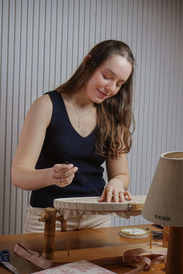É justamente desse desejo que a fundadora da ANTICO, Julia Antico Lucchesi, iniciou seu processo de busca por um abajur especial para si mesma. Nesse caminho ela se depara com uma ideia, por que não juntar sua paixão por bordar com a vontade de ter um abajur especial?